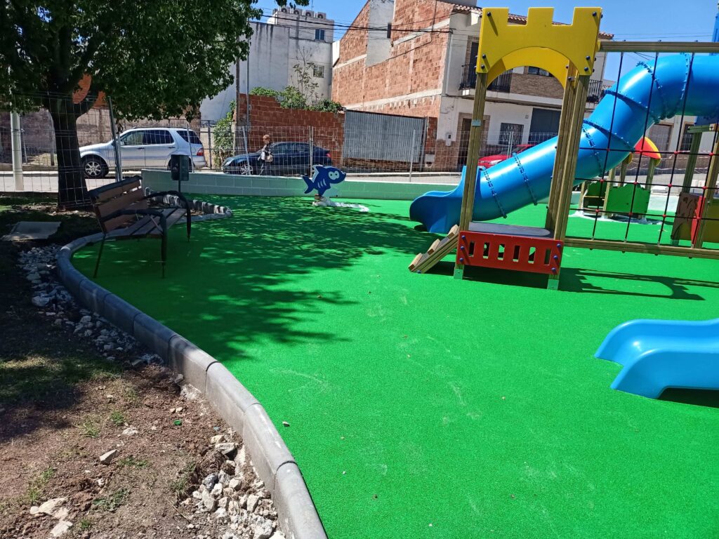El nuevo parque infantil se convierte en un espacio clave para el ocio al aire libre y la interacción social, contribuyendo a dinamizar la vida en la plaza y a mejorar la calidad del entorno urbano.la pla