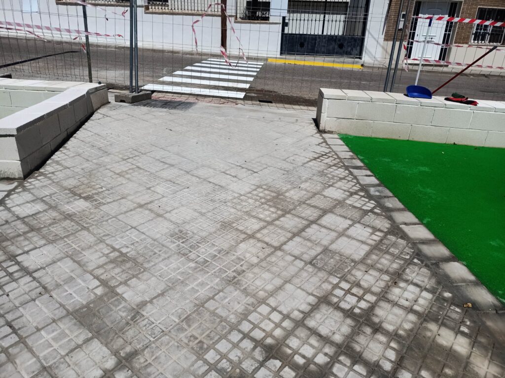 La actuación ha consistido en la adecuación del espacio existente para transformarlo en una zona de recreo segura, accesible y atractiva para niños y familias. Los trabajos han incluido la preparación del terreno, instalación de pavimento continuo de seguridad, colocación de juegos infantiles homologados (toboganes, columpios, estructuras de escalada), y la integración de nuevo mobiliario urbano como bancos y papeleras.